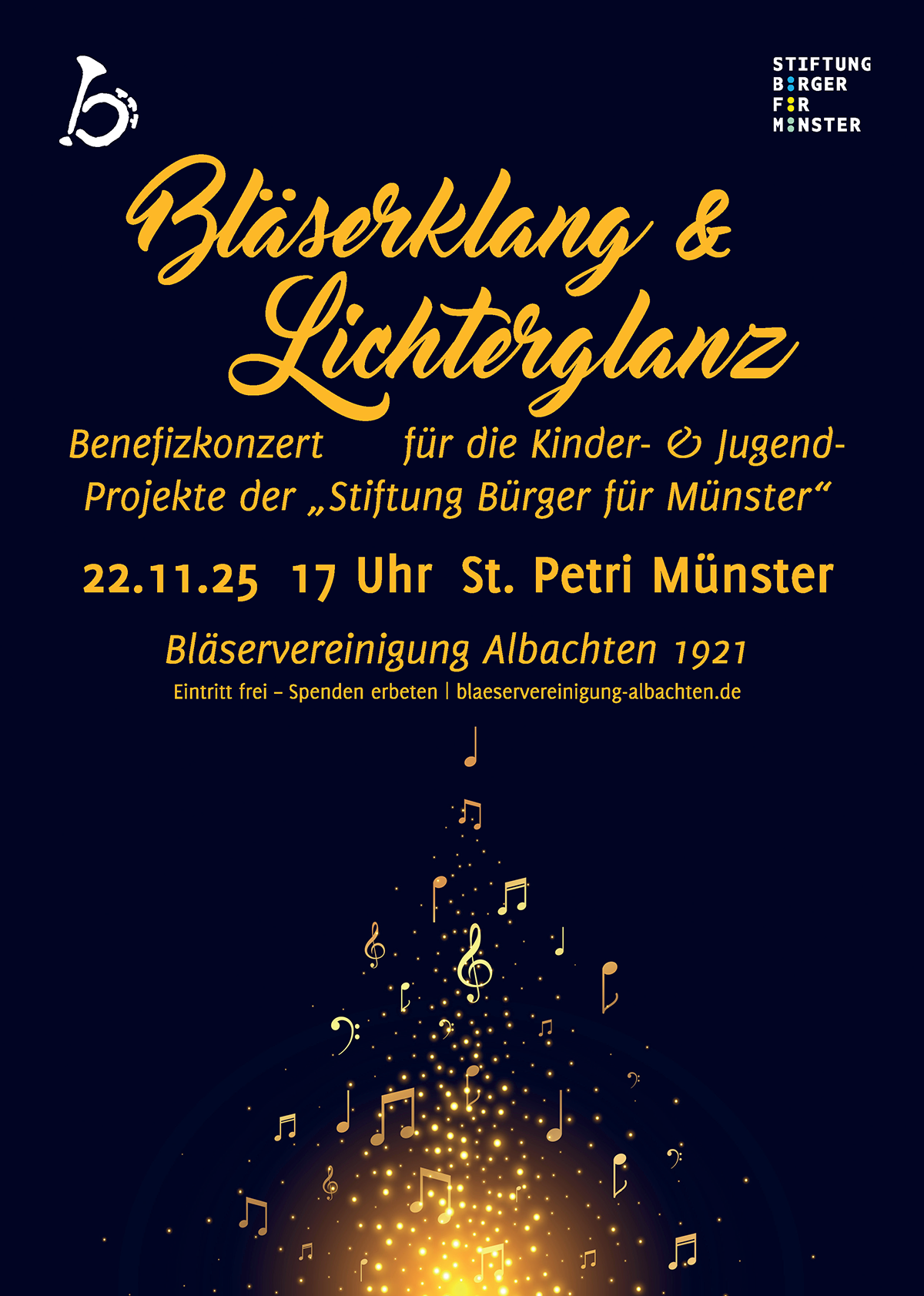 Zum zweiten Mal arbeiten wir dabei mit der Stiftung Bürger für Münster zusammen: Die Spenden, die im Rahmen dieses Konzerts gesammelt werden, kommen den Kinder- und Jugendprojekten der Stiftung zugute.
